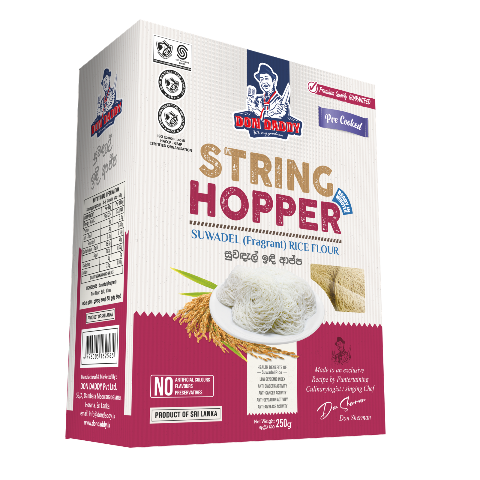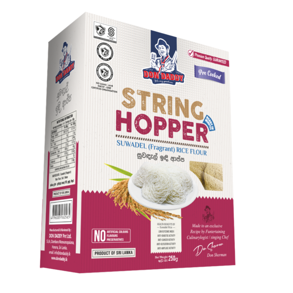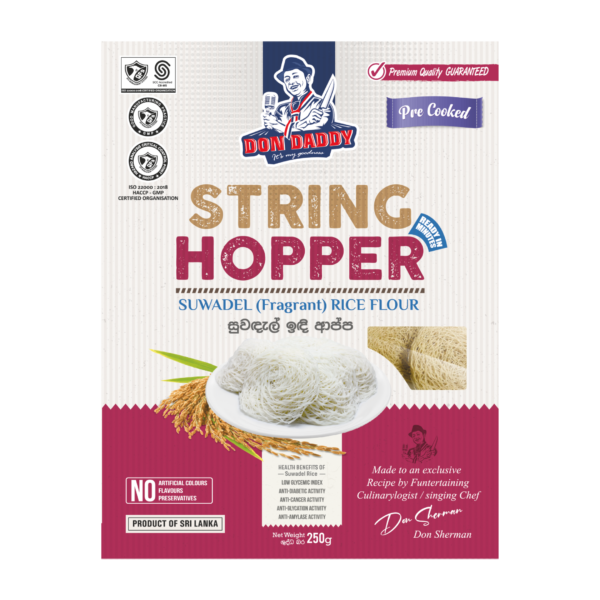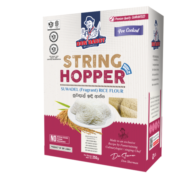 At the present, meanwhile the String hoppers are becoming pivotal Sri Lankan meal, we have perceived that the conventional string hopper preparation process  is quiet difficult for the people who are engaging in busy life style. We as DONDADDY has proudly introduced an innovative and convenient solution in preparing string hoppers within 2-3 minutes through our dehydrated string hopper range with herbal touched, addressing the variety of nutritional deficiency.